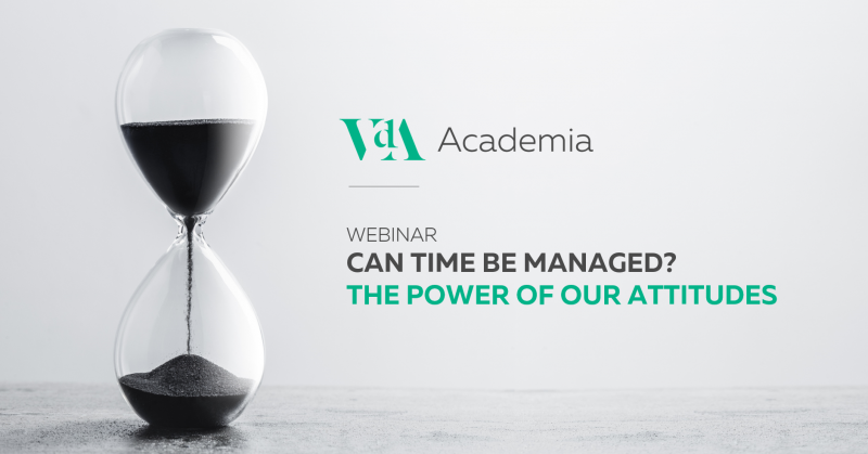 The webinar on “Can time be managed? The power of our attitudes” addressed the way time management is an important component of our overall productivity in the workplace on a daily basis, while emphasizing the importance of self-awareness about our attitudes and behaviors, which influence our ability to get more done each day. It was hosted by Sandra Pedro Serrano, CEO of VdA Academia.
